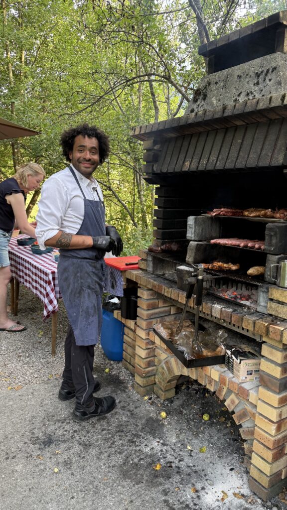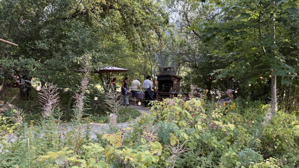Elke week op donderdag is er BBQ. Afhankelijk van het weer in de tuin of binnen. Tot nu toe was ik vooral vrij op donderdag, waardoor ik dit evenement eerder miste, maar de afgelopen weken ben ik op vrijdag vrij en wordt het dus niet gemist. Alke doet diverse activiteiten met de gasten, waar wij over het algemeen weinig aan bijdragen. Er is een wijnproeverij op zondag – daar draag ik persoonlijk aan bij door eventueel de glazen klaar te zetten, brood te snijden, water en kaas te brengen, ook hier met weersafhankelijke locatie. Op maandag is er een wandeling met de gasten, op woensdag ook nog eentje, dus tegen de donderdag is het ijs soms aardig gebroken. Voeg daar de informele tuinsfeer aan toe en je ziet het voor je, 1 en al gezelligheid.