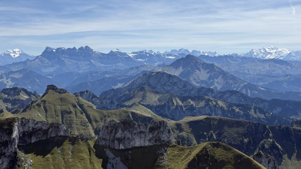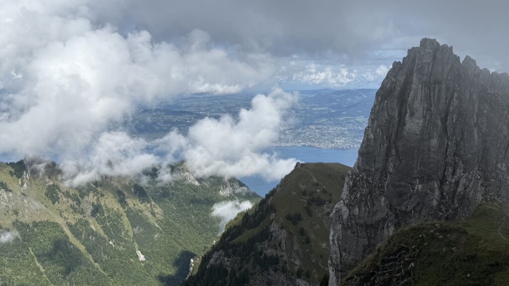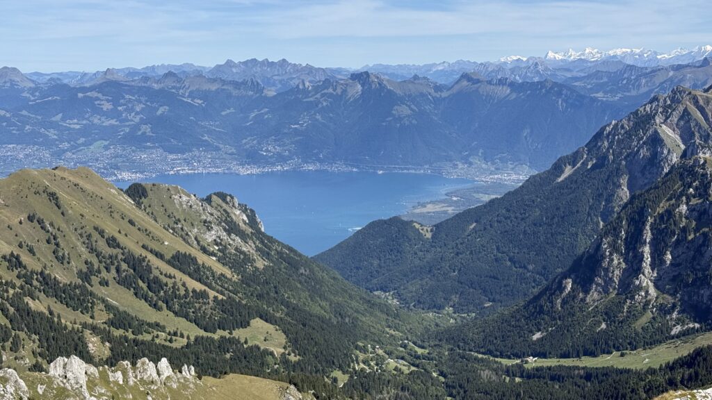 In het weekend was het perfect weer, maar helaas was de zondag een volle werkdag voor mij. De zaterdag heb ik er nog snel een tocht bij Dent d’Oche weten uit te persen, zeker weer een hoogtepunt hier in de buurt. De refuge die ongeveer in de rotsen was gebouwd serveerde geen cola zero, maar wel pannenkoeken en perrier, en dan heb je toch al 2 van de 4 p’s die een gezond en gebalanceerd kinderdieet voorstellen als ik het me goed herinner. De uitzichten waren met het prachtige weer fenomenaal.