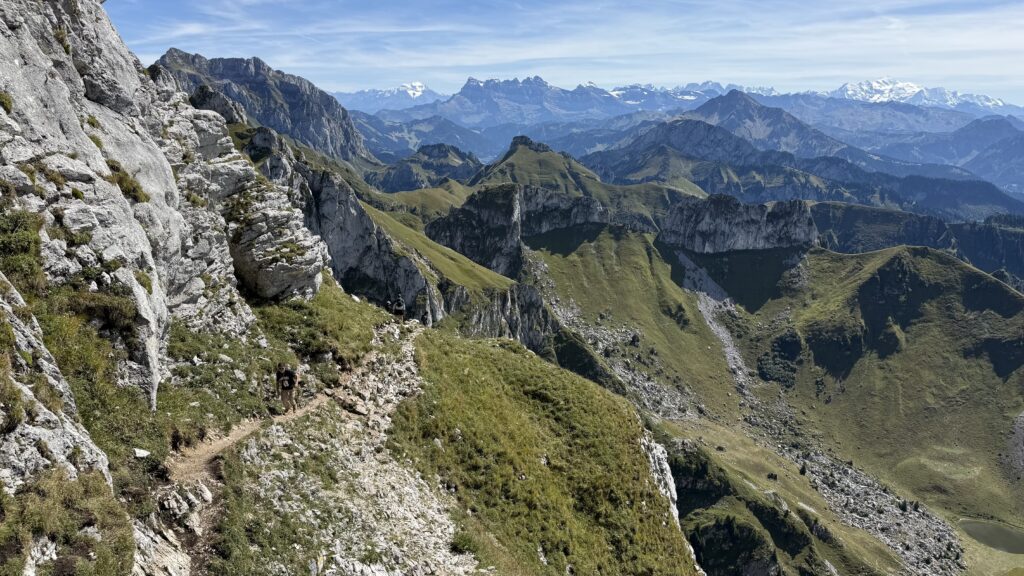 Toen was het nog maar 7 uur en de hele dag lag omzeggens nog voor me, dus wat doet een mens dan? Verder wandelen natuurlijk, Zwitserland indalen en vervolgens weer uitklimmen, en terug naar de parking. En dan heb je er tegen 10 uur zomaar een hele dag op zitten, en alweer een hele mooie tocht achter de rug. Wat best handig is als je daarna nog moet werken.