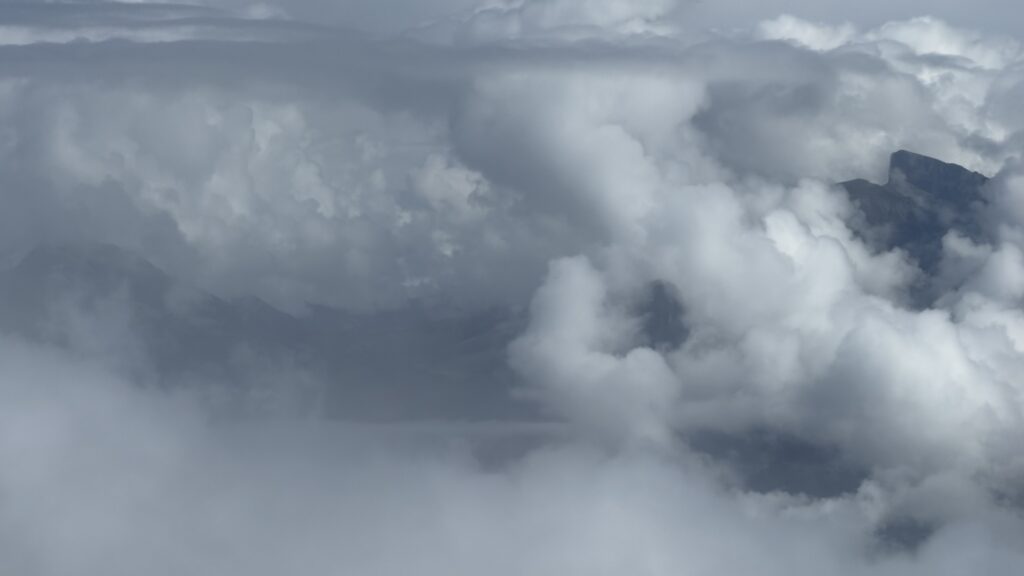 Een half uur voor het daadwerkelijke evenement stond ik al op de top, en toen begon het wachten. Ik maakte van de gelegenheid gebruik om thee te drinken, en heel veel foto’s te maken van de mij omringende bergen. Het was best frisjes ondanks de droge kleren die ik mee had. Mijn drone mocht ook een beetje vliegen, maar die was niet verrukt van de condities. Hij was de hele tijd aan het klagen dat hij te hoog was – ja we staan op een berg, maar je bent nog vlakbij het pad dus verman jezelf. En hij vond het ook te veel wind. Daar wilde ik dan nog wel enigszins in meegaan – ik weet hoe sommige mensen zijn met wind (jullie weten wie jullie zijn!) en bovendien waren mijn handen inmiddels te koud om de drone nog effectief te besturen, dus ik liet het erbij zitten.
